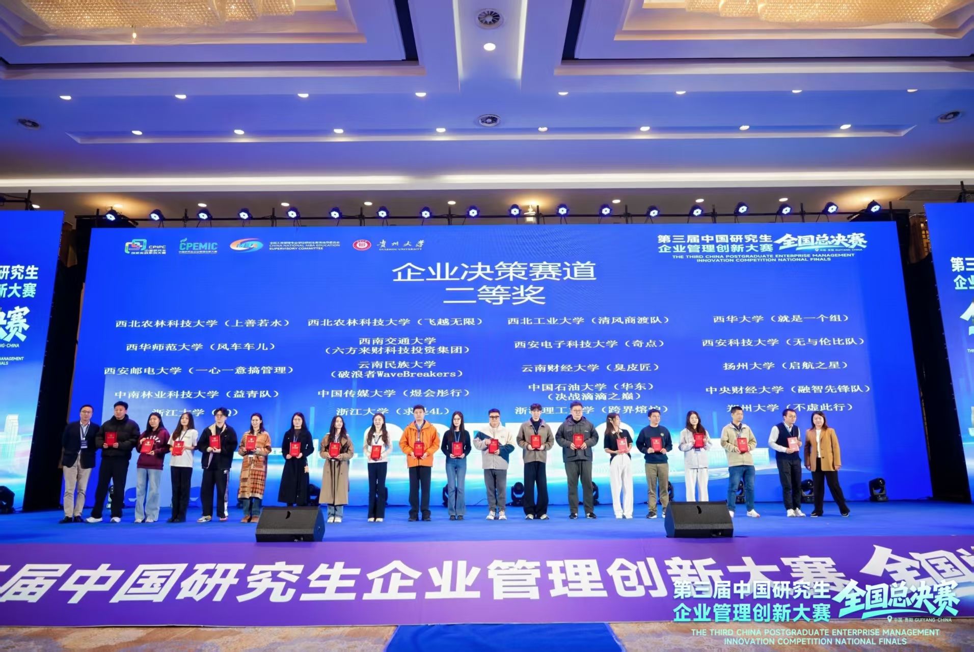 2025年11月7日至9日,第三届中国研究生企业管理创新大赛总决赛于贵阳圆满收官。西北工业大学代表队载誉而归,于本届赛事中多点开花,成绩斐然。其中,来自粤港澳大湾区的参赛团队,企业决策赛道获二等奖1项;商业分析与实践赛道获二等奖1项;AI与数字技术应用专项赛道获三等奖1项。他们以卓越的综合素质与专业技能,在激烈角逐中力挫群雄,充分展现了西工大学子锐意进取的精神风貌与学校管理学科扎实深厚的育人成效。
